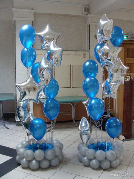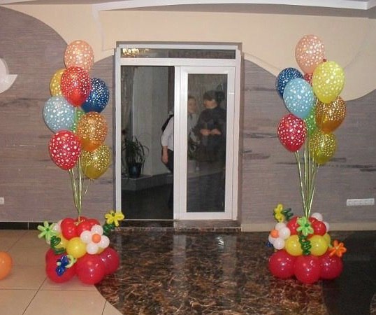 Фонтаны либо красивые связки шаров в виде напольных композиций