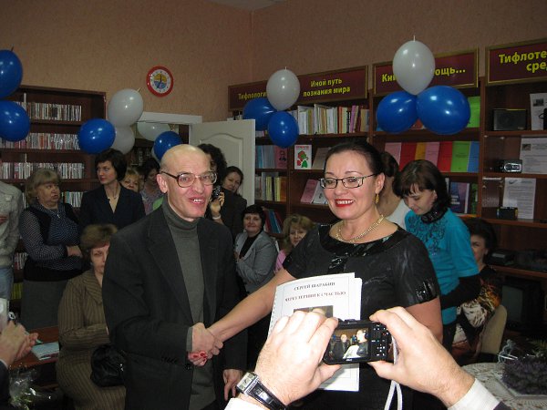 Калуга. Областная специальная библиотека для слепых им. Н.Островского. Вручение Сергею Шарабину его книги “Через тернии – к счастью”, издано по Брайлю. 3.12.2012 г.