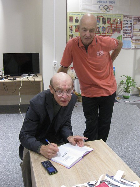 Калуга. В Калужском Дворце спорта «Центральный» Сергей Шарабин передает в фонд музея спортивной славы авторские книги руководителю Михаилу Ивановичу Кардополову. 29.09.2022 г.