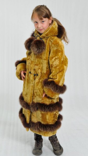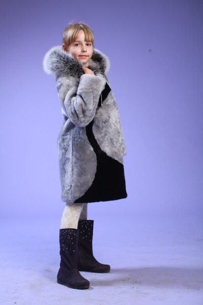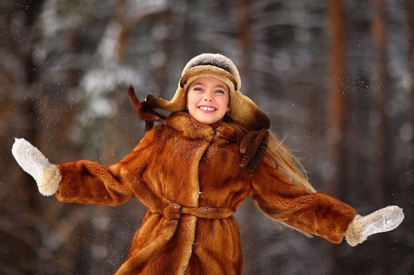 Милая маленькая девочка в великолепных шубках